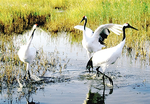 查干湖国家级自然保护区主要保护对象是半干旱地区湖泊水生生态系统、湿地生态系统和野生珍稀、濒危鸟类。保护区内现有鸟类15目34科116种,占吉林省鸟类总数的35.6%,其中水鸟有13科58种,占本区鸟类总种数的50%。属国家Ⅰ级保护的有白枕鹤、白头鹤、丹顶鹤等5种;属国家Ⅱ级保护的有白天鹅、雀鹰、灰鹤等12种。随着环境保护工作的不断开展,全区植树造林面积逐年增加,植被得到恢复,湖泊塌岸得到治理,鸟类数量也明显增加。中华秋沙鸭、白天鹅等国家级重点保护鸟类年年来保护区栖息、繁殖。