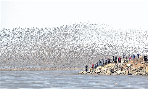 随着国际关注度的提高,丹东更加爱惜这片生态宝库。据丹东市政府相关负责人介绍,为保护好迁徙鸻鹬类水鸟资源,保护区自1999年开始,每年开展迁徙涉禽调查,形成了系统的监测体系,为鸻鹬类涉禽研究积累了大量原始资料。目前,保护区在每个调查周期观测到的迁徙涉禽数量在10万至20万只。据专家估算,每年春季水鸟北迁的过程中,在鸭绿江口停歇的鸻鹬类水鸟约有50万只。