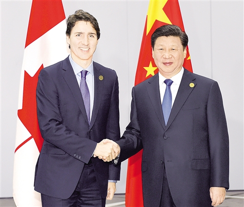 习近平指出,加拿大在发展对华关系方面曾经长期走在西方国家前列。45年前,你的父亲皮埃尔·特鲁多总理作出同新中国建交的历史性决定,展现出非凡政治远见。45年后的今天,中加应该合作、能够合作的领域更加广阔。新形势下,中加双方应该增进政治互信,加强领导人之间的交流和交往,在相互尊重、合作共赢基础上发展长期健康稳定的战略伙伴关系;加强发展战略对接,拓展广泛领域合作;加强文化、教育、旅游等领域交流合作。中方愿同加方一道,创新思维,积极行动,挖掘合作潜力,打造更多合作亮点,把两国务实合作提高到新的更高水平,推动中加战略伙伴关系得到更大发展,更多更好造福两国人民。中方愿同加方在联合国、二十国集团、亚太经合组织等多边机制中加强沟通和协调,更好发挥这些多边机制作用,共同致力于促进亚太地区和世界和平、稳定、繁荣。