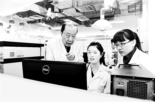 作为国家海洋科技创新的重要平台,我国海洋领域唯一的国家实验室——青岛海洋科学与技术国家实验室日前正式启用。该国家实验室共设有海洋动力过程与气候、海洋生物学与生物技术和海洋生态与环境科学等8个功能实验室,将围绕国家海洋发展战略,整合国内海洋科研资源与力量,开展原创性前沿技术研究,不断提升我国海洋科学与技术自主创新能力。图为在青岛海洋生物医药研究院,管华诗院士(左)在指导研发人员做海洋多糖脱离实验。