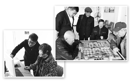 ▲ 幸福里小区设立了“老爸老妈之家”,老人们在这里可以健身、打球、打牌、下棋、读书、练习书画、结交朋友。图为社区老人们聚在一起下棋。