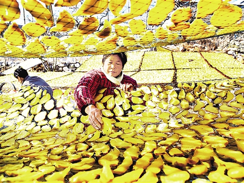 近日,山东枣庄市山亭区倪山口村农民在晾晒即将出口的地瓜干。近年来,该区致力于发展地瓜、大豆等特色农产品深加工产业,拉长产业链条,帮助农民增收致富。 刘明祥摄