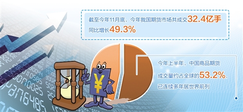 截至今年11月底,我国期货市场共成交32.4亿手,同比增长49.3%;今年上半年,中国商品期货成交量约占全球53.2%,已连续多年居世界前列。虽然在成交量等方面表现不俗,但许多业内人士表示,与国际成熟市场的交易所相比,我国期交所在推广代表性交易品种、对外沟通合作等方面仍存在较大差距。