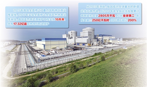 解振华表示,近年来中国大力发展可再生能源,水电10年间增加了2.57倍,风电增加了90倍,光伏发电装机增加了近400倍。由于中国可再生能源的发展,使得可再生能源成本大体上降低了50%。