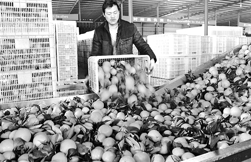 12月20日,秭归县脐橙加工厂工人在清洗脐橙鲜果。近年来,湖北省秭归县大力推行“农企对接”模式,让广大柑农直接将脐橙销售给当地企业,由企业进行清洗、分级、包装后销售,不仅改变了以前柑农坐等客户上门收购的传统销售模式,也保障了脐橙鲜果收购价格,让广大柑农脱贫致富。
