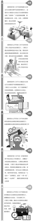 作为推动大众创业、万众创新的系统性政策文件,国务院《关于大力推进大众创业万众创新若干政策措施的意见》把推进大众创业、万众创新定位为“稳增长、扩就业、激发亿万群众智慧和创造力,促进社会纵向流动、公平正义的重大举措”,并从9大领域、30个方面明确了96条政策措施,在全社会掀起了创新创业的风潮。
