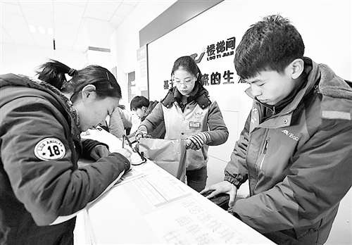“90后”创客李馨乐、李剑成立的山西太原市楼梯间科技有限公司力图解决校园快递“最后一公里”问题,在各大院校开设线下快递服务站,将中国邮政、京东、圆通等公司的快递业务进行整合,通过自己的快递管理系统集中存储、收发。 新华社记者 王菲菲摄