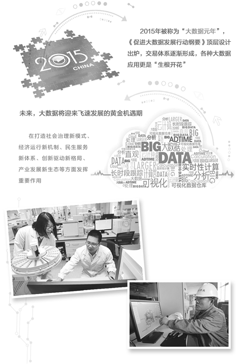 《2015年中国大数据发展调查报告》显示,2015年中国大数据市场规模达到115.9亿元,增速达38%。中国银行副行长朱鹤新表示:“大数据在我国已具备了从概念到应用落地的成熟条件,迎来了飞速发展的黄金机遇期。大数据将在打造社会治理新模式、经济运行新机制、民生服务新体系、创新驱动新格局、产业发展新生态等方面发挥重要作用。”