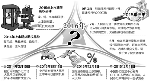 同股票市场一样,债券市场、期货市场、外汇市场,也是我国金融市场的重要组成部分。当前,这三大市场在制度建设方面不断完善,在与实体经济融合发展方面也日益加深。2016年,市场走向如何,制度建设上又会有哪些突破?请看本报记者的分析——