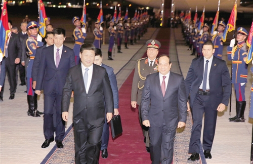 习近平是在结束对沙特阿拉伯国事访问后抵达埃及的。离开沙特时,沙特王储继承人穆罕默德、国务大臣艾班等到机场送行。习近平专机离开沙特前,沙特战机全程护航。