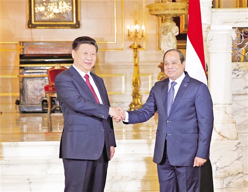 习近平指出,中方高度重视发展同埃及的关系,支持埃及恢复稳定、实现发展,支持埃及人民自主探索符合本国国情的发展道路。我这次访问期间,中埃双方将共同发表关于加强全面战略伙伴关系的五年实施纲要,全面规划中埃各领域合作。双方要发挥高层互访的引领作用,对彼此核心利益给予坚定支持,不断充实战略内涵。双方要将各自发展战略和愿景对接,利用基础设施建设和产能合作两大抓手,将埃及打造成“一带一路”沿线支点国家。中方愿参与埃及苏伊士运河走廊、新行政首都等大项目建设,愿同埃方扩大在贸易、融资、航天、能源、人力资源开发、安全等领域合作。双方要加强在联合国事务中的协调配合,在中东、气候变化等国际和地区问题上保持沟通,维护我们两国及广大发展中国家共同利益。中方愿意同埃方加强人文合作,密切文化、教育、旅游交流,增进两国人民友好交往。