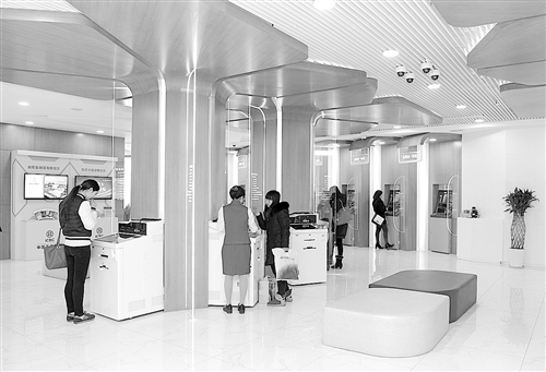 在北京西单商圈,有这样一家“不太像网点的网点”:一层大厅没有柜面,取而代之的是47台智能自助设备。