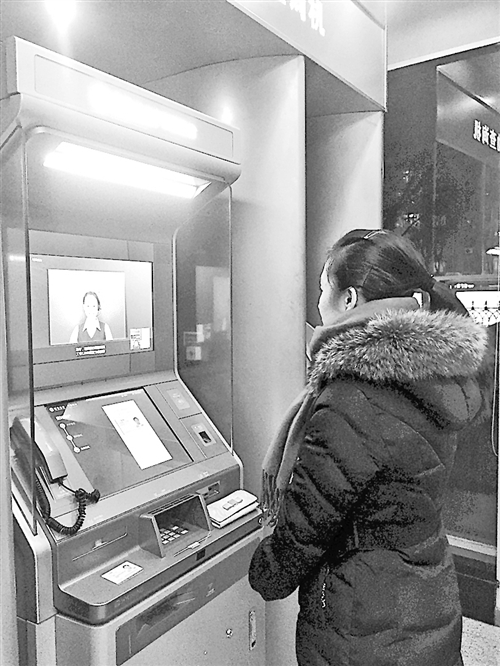 在自助银行服务区,一个“人机对话”场景吸引了多位客户驻足。记者观察到,这个可视柜台(VTM)配置了摄像头、读卡器、身份证识别器等功能模块,客户可通过网络视频技术与总行后台运营中心人员“面对面”沟通办理业务。