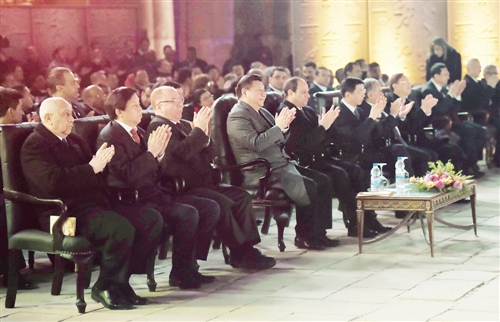 习近平和塞西同中埃各界人士200多人共同观看了由中埃演职人员联袂献上的《两个伟大文明对话》主题演出。