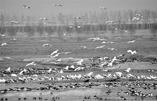 入冬以来,到湖北省武汉市府河湿地越冬的候鸟达到19种近3万只,包括斑头雁、绿头鸭、天鹅等。杜华举摄 (新华社发)