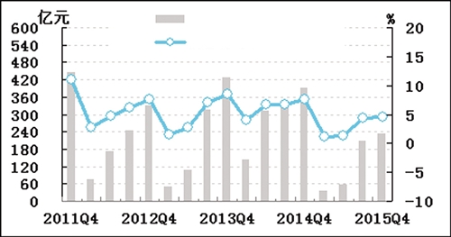 经初步季节调整,四季度非金属矿物制品业固定资产投资总额为4730.4亿元,同比增长2.6%,比上季度下降3.9个百分点。固定资产投资增速的持续下降有利于缓解产能过剩压力,改善供求格局,促进行业的健康合理发展。