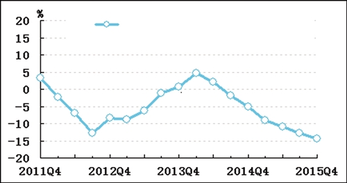 2015年四季度,中经水泥产业①景气指数为97.4,比上季度下降0.2点。水泥行业景气指数连续7个季度下降。