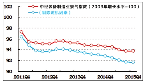 2015年四季度,中经装备制造业景气指数为93.8,与上季度持平,延续了平稳运行的态势。中经装备制造业预警指数为63.3,与上季度持平,继续在偏冷的“浅蓝灯区”下临界线运行。