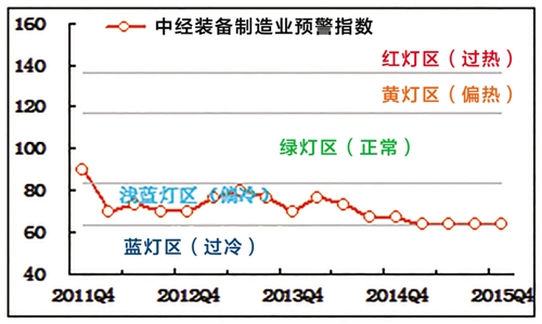 四季度,中经装备制造业预警指数为63.3,与上季度持平,继续在偏冷的“浅蓝灯区”下临界线运行。