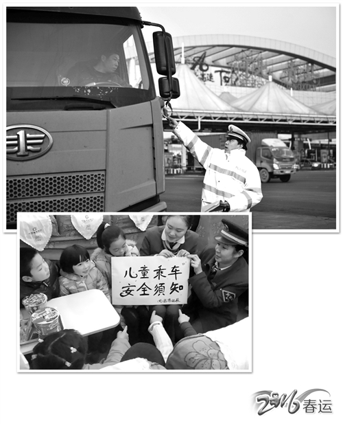 图① 1月28日,河北省高速交警总队青县大队交警在向卡车司机发放交通安全提示单。近日,河北高速交警全面启动38个春运交通安全服务站和147个高速公路驻警点,为“平安春运”保驾护航。