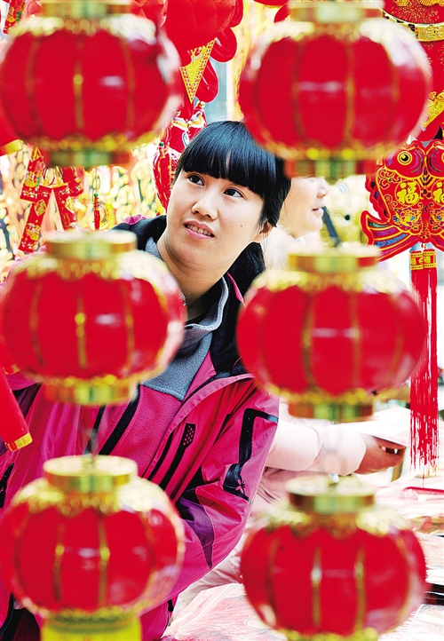 2月5日,江西德兴市泗洲镇祝家村群众选购自己喜爱的春节挂饰。新春佳节将到,即便是在江西德兴市的偏远乡村,年货市场也非常红火,购销两旺。