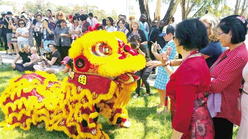 2月9日,澳大利亚联邦议会大厦前举行舞狮表演。当天,澳大利亚联邦议会首次为中国春节举行庆祝仪式。 本报记者 翁东辉摄