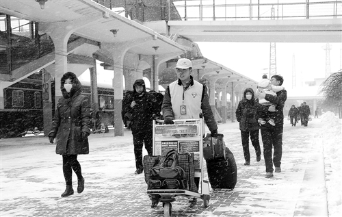 据气象部门预报,我国华北大部、东北地区南部以及中东部地区将迎来雨雪降温天气。内蒙古、甘肃等省区已经出现降雪,呼和浩特、兰州铁路局迅速启动应急预案,组织人员清扫站前广场、站台积雪,铺设防滑地毯,设立防滑警示牌,安排专人防护引导。