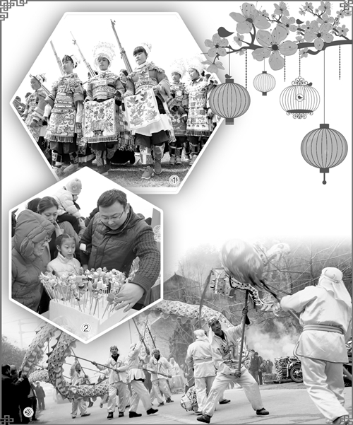 上图 2月13日,贵州龙里的苗族同胞举行“跳月”活动,欢度新春,祈求风调雨顺。 本报记者 吴秉泽摄