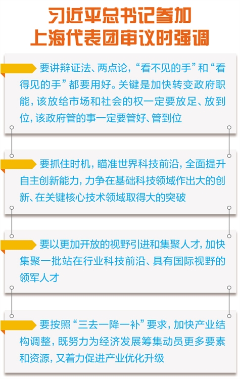 习近平总书记3月5日在参加十二届全国人大四次会议上海代表团审议时作的重要讲话,在代表、委员中引起热烈反响。代表、委员们表示,总书记强调保持锐意创新的勇气、敢为人先的锐气、蓬勃向上的朝气,贯彻落实创新、协调、绿色、开放、共享的发展理念,让人倍感振奋。要解决我国经济深层次矛盾和问题,根本出路在于创新。各地应以时不我待的紧迫感推进各项工作,争做创新发展先行者。