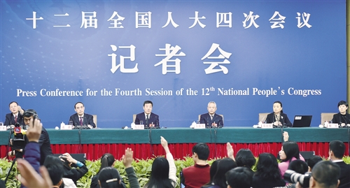 在3月10日举行的十二届全国人大四次会议记者会上,全国人大内司委副主任委员王胜明、全国人大财经委副主任委员乌日图、全国人大环资委副主任委员袁驷、全国人大常委会法工委副主任郑淑娜就人大立法工作等相关问题回答了记者提问。