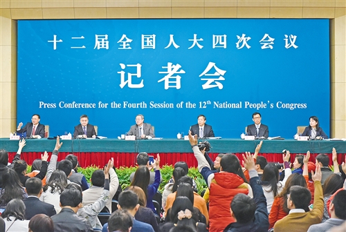 3月12日下午,十二届全国人大四次会议举行记者会,中国人民银行行长周小川、副行长易纲、副行长兼国家外汇管理局局长潘功胜、副行长范一飞就金融改革与发展等相关问题回答中外记者提问。