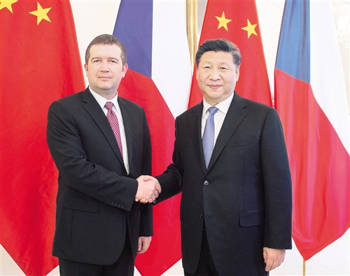 习近平强调,中捷两国和两国人民有着深厚的传统情谊,也有着长期良好的合作基础。我们两国经济互补性强,当前双边关系进入了全面发展的快车道。中捷加强经贸、产业、人文等各领域合作,正当其时,正当其势。中方视捷克为中国在中东欧地区的重要合作伙伴,我们愿同捷方一道,牢牢把握两国关系发展大方向,结合“一带一路”加强双方发展对接,继续拓展双方互利合作,不断夯实两国民意基础,推动中捷关系持续健康稳定发展。