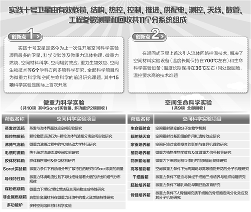 “实践十号是我国首颗大规模无人微重力实验卫星。”卫星系统总师、航天科技集团第五研究院研究员赵会光对记者说,此次将需要精度最高的实验放在卫星最好的部位,微重力水平可以优于10的负6次方重力水平,而卫星总体环境是10的负4次方重力水平。