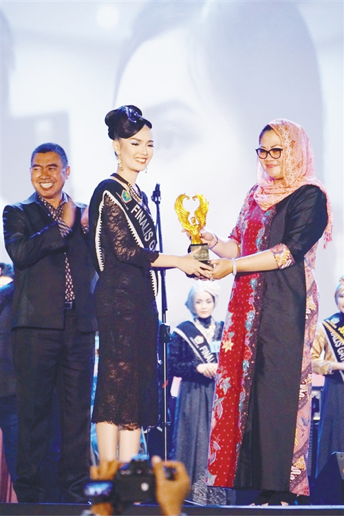 本届印尼政府积极推动税收体制改革和机制创新。图为中爪哇省玛琅市市长夫妇为刚当选的“2016年度税收偶像”颁奖。本次获奖者均为当地在校大学生,将在一年的任期里向各界尤其是青年宣传依法纳税对国家和社会的重要意义。 本报驻雅加达记者 田 原摄