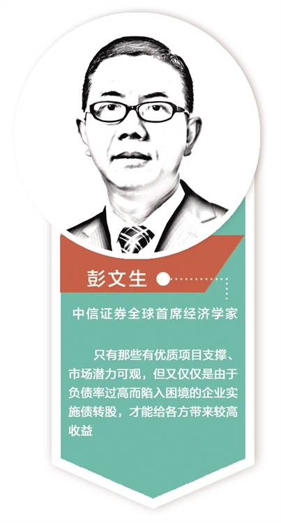 彭文生:受我国当前经济形势、产权结构、商业银行的经营状况各种条件所限,预计本轮债转股将更多采取市场化主导的方式。从实现政府与企业、经济与社会效益最大化的角度看,充分发挥各类市场主体作用无疑是最优选择。