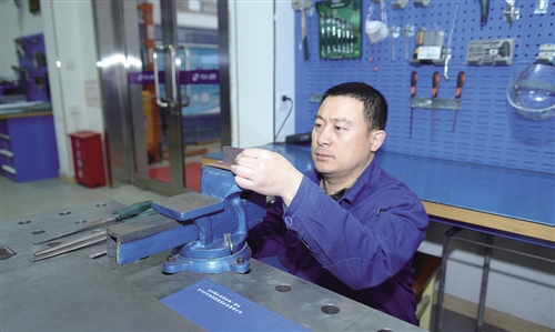 “张师傅热爱钳工这一行,工作是他的兴趣不是负担。”这是张学海的同事对他工作态度的评价。