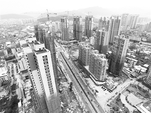 ◁ 福建省龙岩市新罗区双洋东路两侧新建楼盘拔地而起。