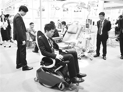 5月3日至5日,由香港贸易发展局主办的第7届香港国际医疗器材及用品展在香港会议展览中心举行,来自12个国家及地区的超过260家参展商参展。图为参观者在展会上体验医疗器材。 (新华社发)