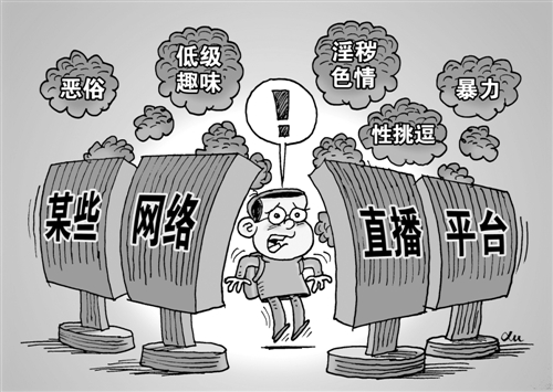 点 评 随着网络直播平台井喷式发展,草根直播内容已不限于娱乐、体育等领域,而是逐步拓展到生活中更多场景。然而,少数恶俗、低级趣味、粗口、暴力甚至淫秽内容也在污染着网络直播空间,对青少年成长、社会风气和公序良俗产生恶劣影响。主播的小窗不是“自家天地”,虚拟空间不能无视道德规范,更不是法外之地。相关企业作为经营主体也不可卸责,要共同营造积极健康的网络环境。 (时 锋)