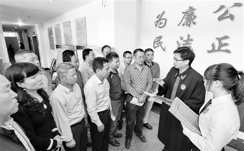 5月17日,闽侯县农业系统党员干部在县法院听取法官对福州市农办一名干部涉嫌违纪违法案例的解析。福州市纪检监察机关在“两学一做”学习教育中,通过旁听涉嫌违纪违法案例庭审、听取案例解析等方式,加强对党员干部的警示教育。新华社记者 张国俊摄