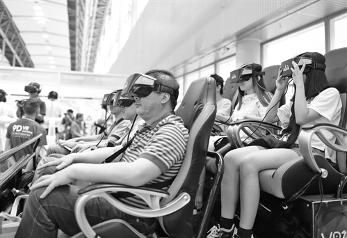 上图 市民在创交会上体验VR(虚拟现实)设备。