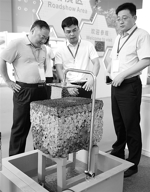 右图 这是创交会上展示的全透水道路结构关键技术项目。新华社记者 卢汉欣摄