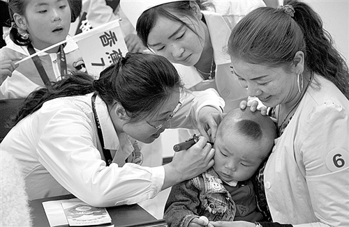 “六一”国际儿童节来临之际,甘肃省妇幼保健院选派数十名省级医疗保健专家前往临夏回族自治州,开展儿童早期发展健康体验和义诊活动。并在专家体检、义诊和示范性查房教学过程中,以“一对一”帮扶的形式提高临夏州妇幼保健院医务人员的专业技能。 本报记者 陈发明摄