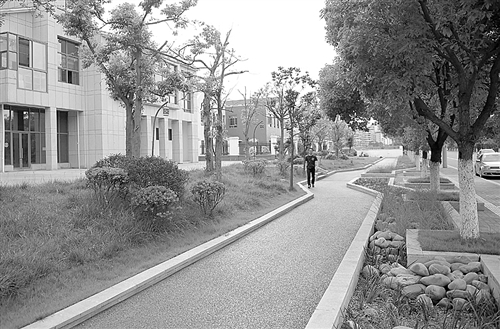 6月2日,行人走在四川省遂宁市河东新区一处透水绿道上。目前遂宁正按“小雨不积水,大雨不内涝,水体不黑臭,热岛有缓解”的目标,加快推进海绵城市建设。项目试点区面积为25.8平方公里,计划到2017年全部建设完成。 新华社记者 薛玉斌摄