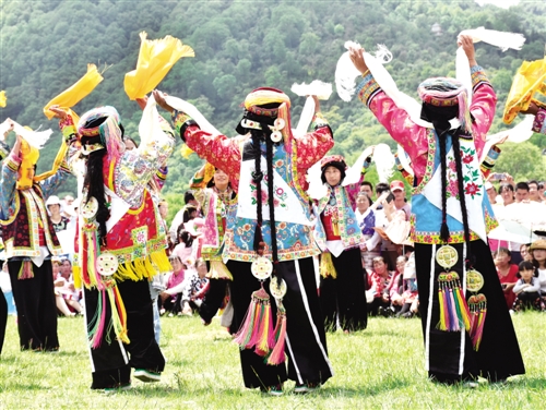 6月9日,甘肃省甘南藏族自治州法官培训学院的学员在舟曲拉尕山用舞蹈演绎藏族故事“佐瑞姑娘”。当日,中国楹联文化翠峰山高峰论坛暨第三届舟曲民俗风情楹联文化节开幕。姑娘们以藏族特有的歌舞,将拉尕山变为欢乐的海洋,让来自全国各地的楹联专家学者、游客体验了不一样的端午风情。本报记者 李琛奇 通讯员 赵胤庆摄影报道
