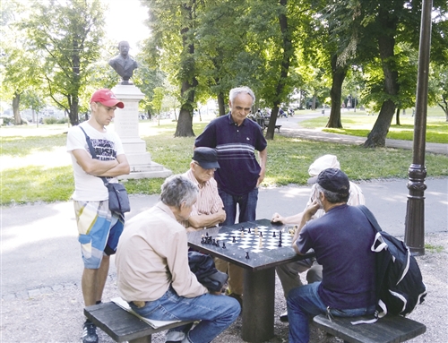 在公园里下棋的当地民众。