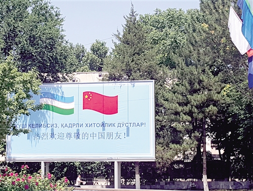 为迎接习近平主席访问和上合组织成员国元首理事会第十六次会议的举行,塔什干焕然一新。图为在塔什干街头,随处可见欢迎标语。 本报记者 李遥远摄