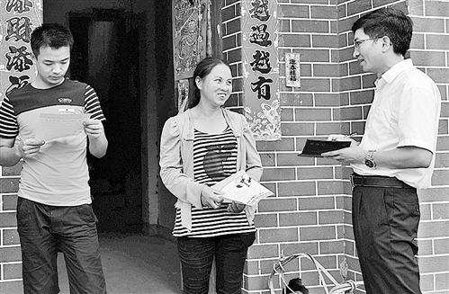 近日,江西新干县农商银行信贷人员在该县界埠镇胡家脑村上门调查贫困户信贷需求情况。今年以来,江西吉安银监分局引导当地银行业积极对接乡镇贫困户,将信贷信息送上门。 李福孙摄