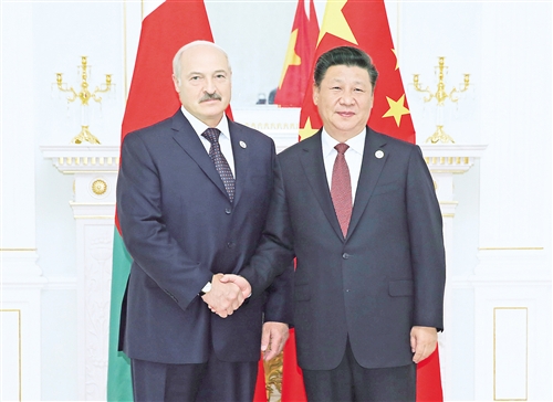习近平指出,去年,我成功对白俄罗斯进行国事访问,卢卡申科总统赴北京出席中国人民抗日战争暨世界反法西斯战争胜利70周年纪念活动。我们就发展和深化中白全面战略伙伴关系作出全面规划和部署。当前,中白关系加速发展,各领域合作全面推进,在涉及彼此核心利益问题上相互坚定支持。