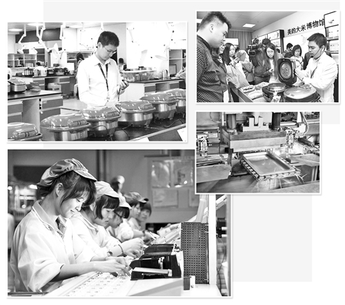 图① 美的生活事业部首席产品经理——“煮饭哥”黄兵正在对电饭煲性能进行比较。